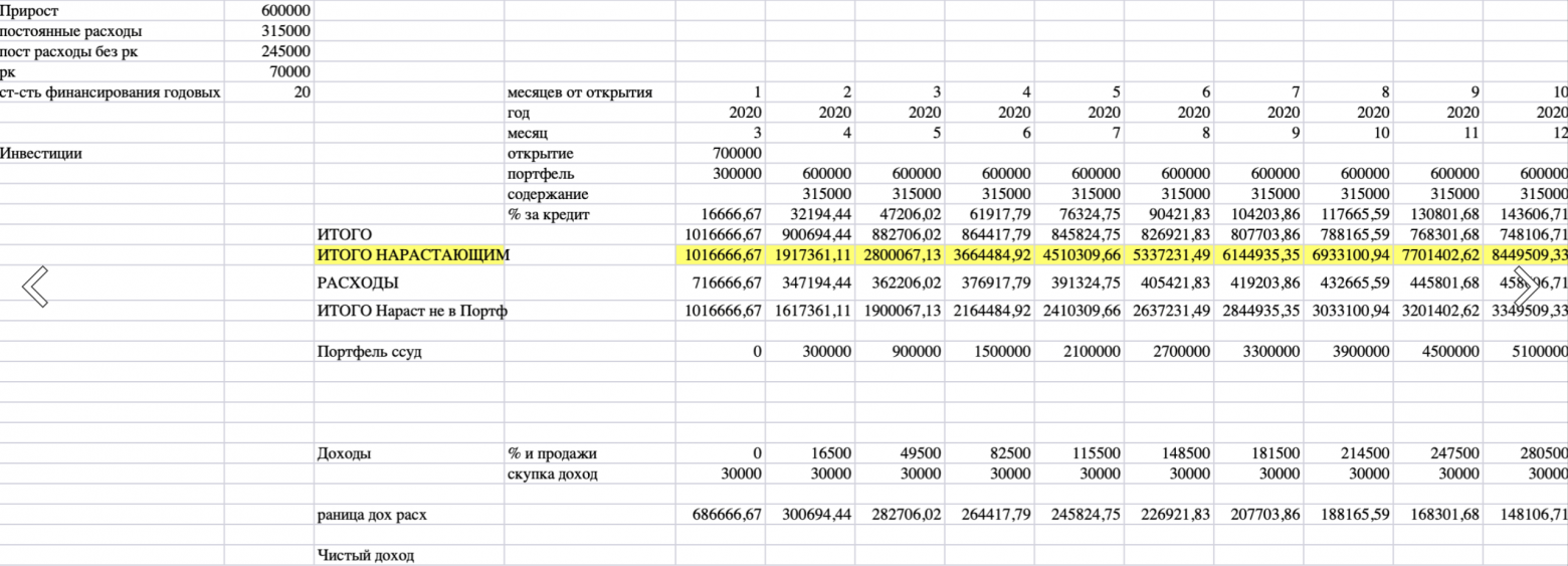 Я обнаружил, что у портфеля займов ломбардов есть свойство «вызревать». То есть, со временем, один и тот же по размеру портфель может приносить более высокую доходность. Это связанно с тем, что скупочные залоги вымываются, а доля клиентов, которые регулярно платят проценты за пользование займом, растет. То есть те, кто не может выкупать, уходят, а тех, кто платит проценты, становится больше. Эту особенность я и не учел в изначальном бизнес-плане.