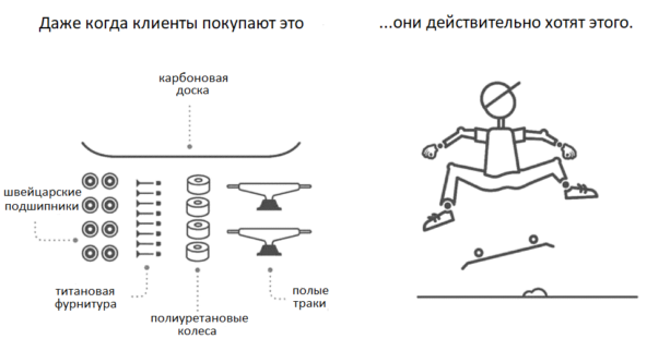 Этот подход помогает взглянуть на продукт с точки зрения задачи, которую он решает для покупателя. Главная мысль в том, что товар — не вещь или услуга, а инструмент, который клиент «нанимает» для решения конкретной проблемы. Суть JTBD проста: люди платят не за товар, а за результат. Иными словами, клиенту нужна не сама дрель, а отверстие в стене.