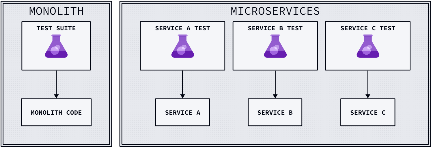 - Проследите, чтобы ваша конфигурация модульных, интеграционных и сквозных тестов была стабильна и при дополнительных разделениях кодовой базы на отдельные сервисы хорошо масштабировалась.