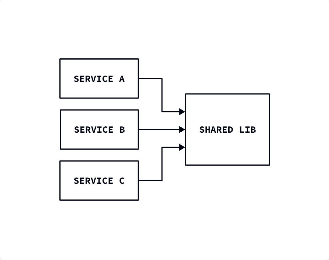 - В небольших проектах, где используется разделение на уровне микросервисов, для согласованной организации кода взаимодействия и механизмов наблюдения лучше задействовать общую библиотеку с типичными вспомогательными функциями. При этом важно сохранять минимальный размер этой библиотеки. Любое серьёзное изменение приведёт к повторной компиляции всех зависимых сервисов — даже если оно их не касается.
