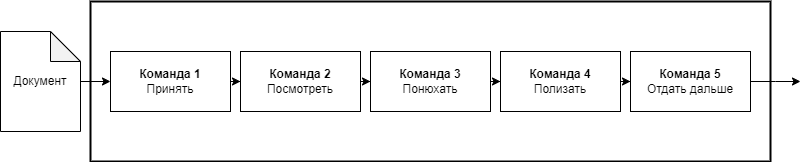 В одном из своих вариантов, это выглядит, как последовательность шагов обработки. Один модуль делает одну часть обработки, второй — другую, третий — еще что-то. О такой вариации чуть ниже (см. признак № 10).