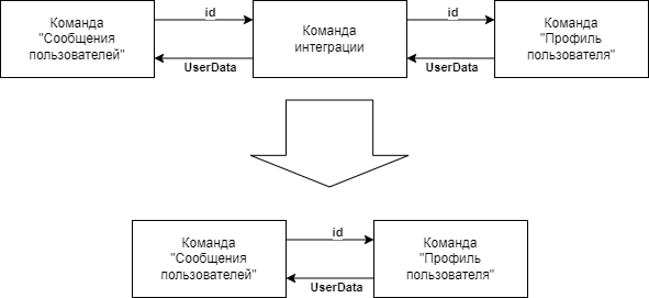 И если вы выберете вариант избежать дублирования, то, в итоге, вы реализовали ту же самую интеграцию, но с другим контрактом. То есть технически дублирования нет, но вот логически еще как: coupling никуда не делся. Если что-то потребуется поменять во взаимодействии, то придется все равно менять в 3 модулях.