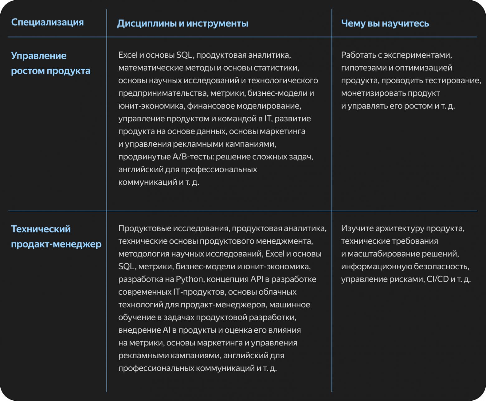 Наши выпускники смогут не только выбирать вакансии с понятными ожиданиями от готовой стратегии продукта, но и искать возможности создать или подхватить какой-то продукт с нуля.