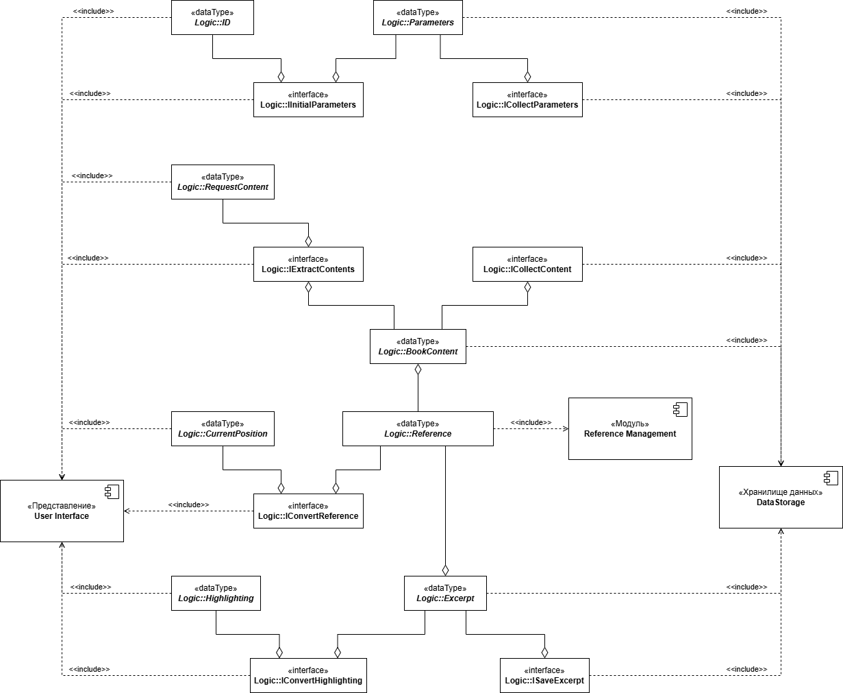 В нашей электронной библиотеке, таким функционалом является модуль управления ссылками. Под ссылкой понимается набор связанных данных указывающих на элементы текста, такие как ссылка на книгу, на главу в книге, на номер абзаца и другие возможные служебные данные. При этом, на момент проектирования трудно с достоверной точностью определить не только состав такой ссылки, но и методы её получения. Многое зависит от формата хранения данных. Логично предположить, что при тестировании возникает не нулевая вероятность того, что в данные будут вноситься изменения. Учитываю такую вероятность, функционал ссылки логично вынести в отдельный модуль.