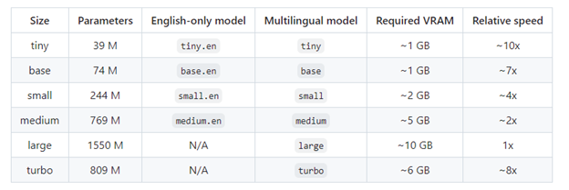 Под любые ресурсы и мощности вашего ПК: Модельки от крошечной «tiny» до монструозной «large» можно подобрать под своё железо. Я обычно целюсь в «large‑v3» для качества, если время позволяет.