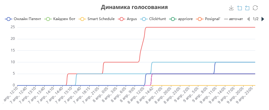 Довольно быстро я написал небольшое веб приложение для анализа голосования на PR в динамике.