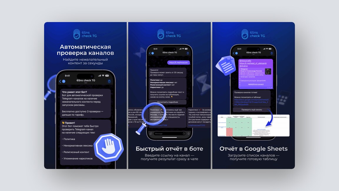 Бот для проверки Telegram-каналов на наличие нежелательного контента перед запуском рекламы.