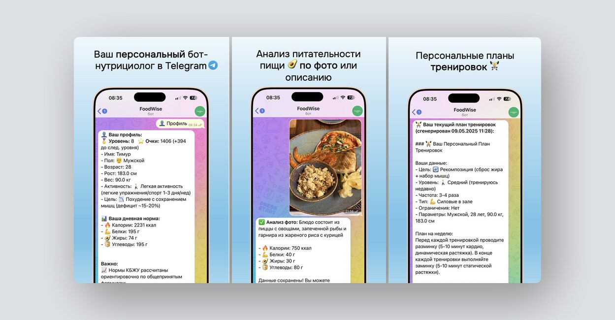 Персональный бот-нутрициолог в Telegram, определяющий питательность пищи по фото и описанию.