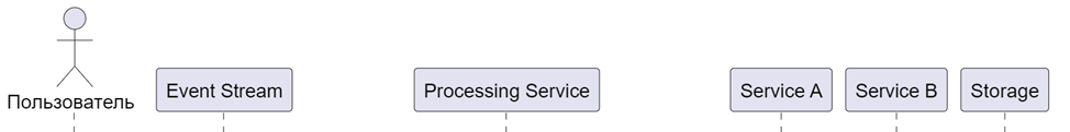 На этом этапе мы определяем всех участников процесса. Это помогает визуально отразить, кто и с кем взаимодействует. Каждый участник диаграммы будет либо инициировать действие, либо принимать участие в обмене информацией:
